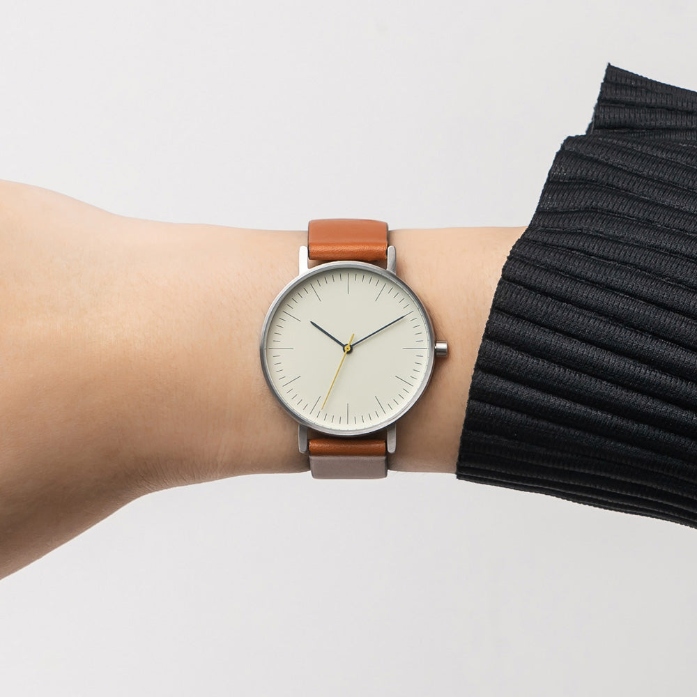 Crafted with precision and elegance, the B001 watch boasts a 36mm/40mm diameter case and a slim 7.6mm thickness. The stainless steel finish adds a touch of sophistication, while the Ronda 763 Swiss Quartz movement ensures precise timekeeping. The hardened mineral crystal lens protects and enhances the off-white dial, complemented by the premium tan leather strap that can be easily interchanged with the quick-release springbar. With a water resistance of 3ATM, this watch is perfect for everyday wear, keeping up with your active lifestyle.