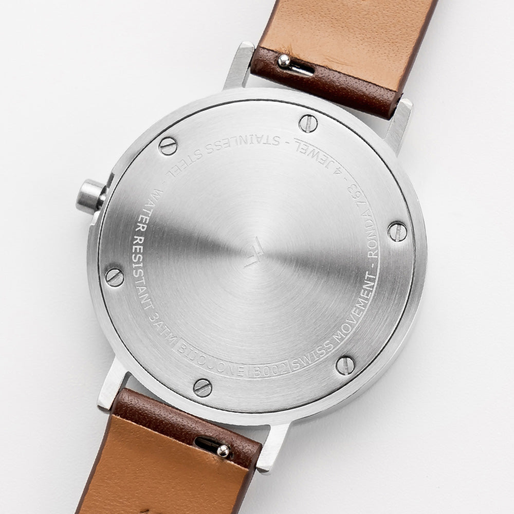 - Strap: Premium coffee Leather, 18mm wide, Quick-release springbar (easily interchangeable)