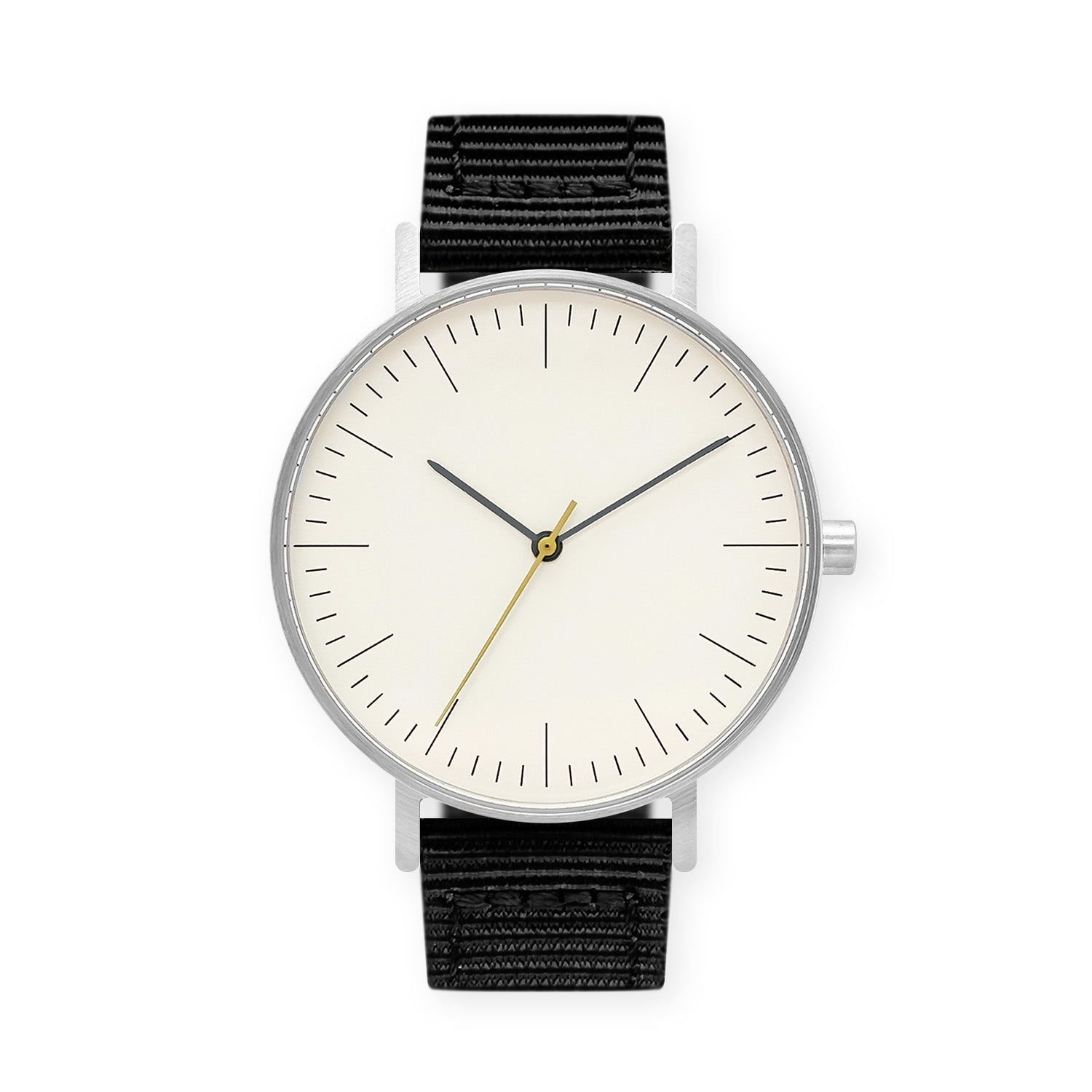 • B001 Watch, Silver Case, Off White Dial, Nylon Strap - Black
