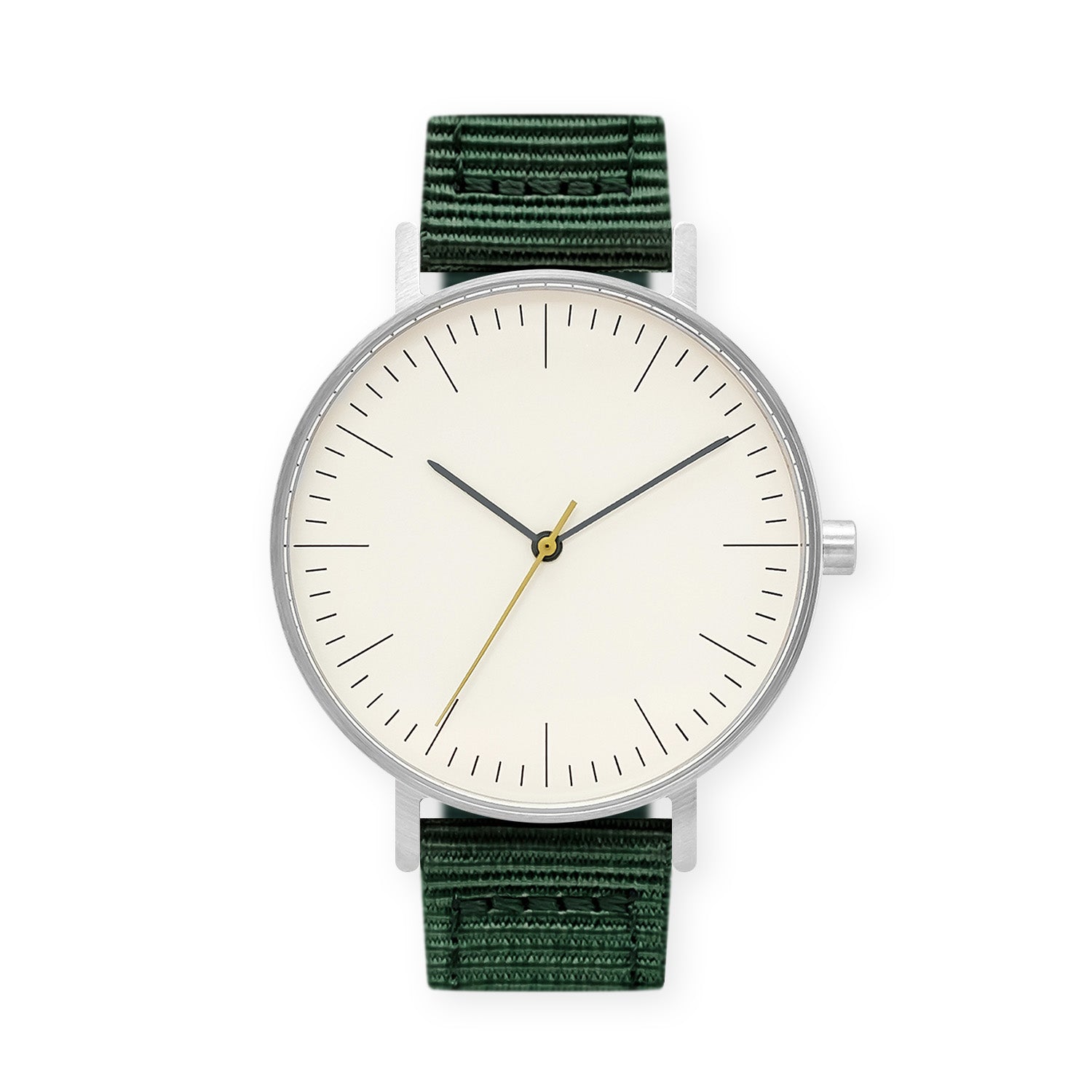 • B001 Watch, Silver Case, Off White Dial, Nylon Strap - Green