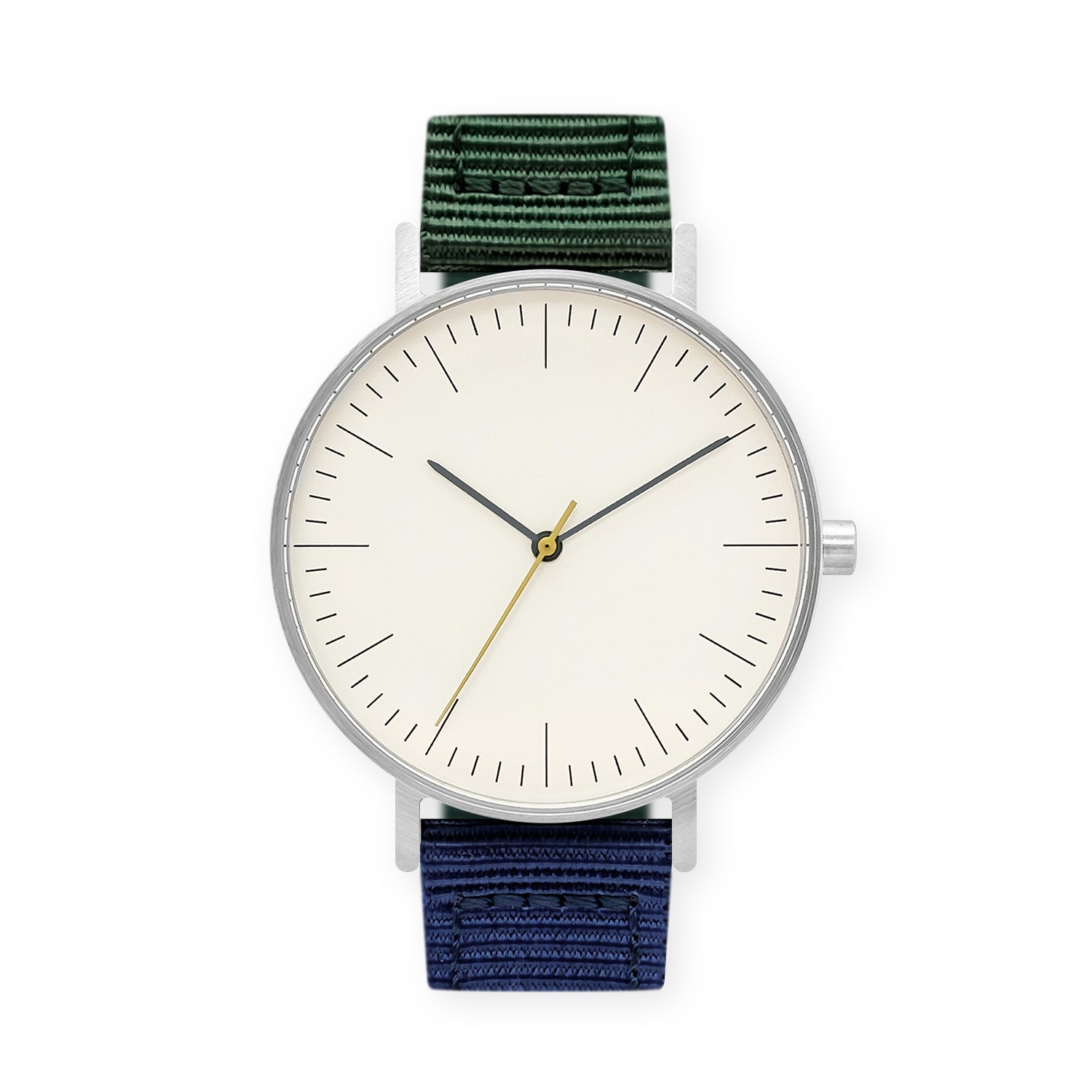 • B001 Watch, Silver Case, Off White Dial, Nylon Strap - Green/Navy